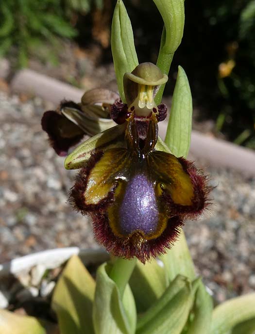Ophrys luteaOphrys lutea at the peak of bloom, and the leaves beginning to die back for summer dormancy. |