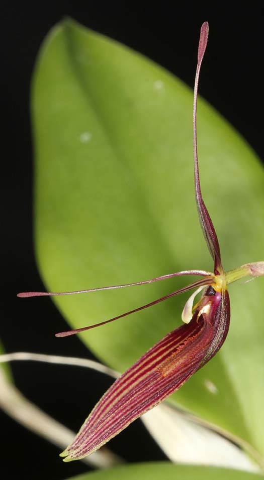 Bulbophyllum medusaeThe fascinating wispy "whiskers" are the sepals, from a multitude of individual flowers. It is native to a wide area of lowland southeast Asia including Mayasia, Indonesia, and Thailand. |