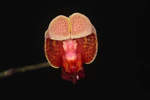 Barbosella cucullataVenezuela, Colombia, Ecuador, Peru, Bolivia at elevations from 1700 to 2900 m. Since the flowers are nearly the same color as the leaves, their development is not obvious, and then, suddenly, it is bloom!