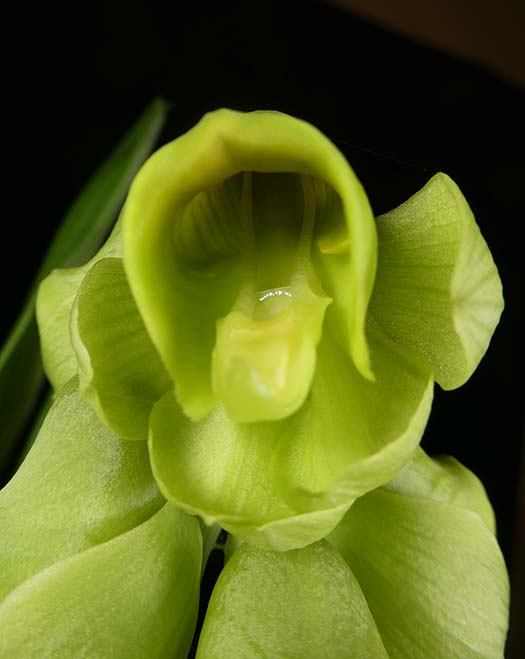 Zootrophion aguirreiFound in Colombia but details about its location at not provided in orchidspecies.com. The flowers of this species shown on the website have small purple spots which this one does not have. I am not sure how the pollinator is able to pollinate this flower as there does not appear to be much of an opening. Growing in a cool greenhouse in a plastic pot filled with a mixture of bark and lava rock. |